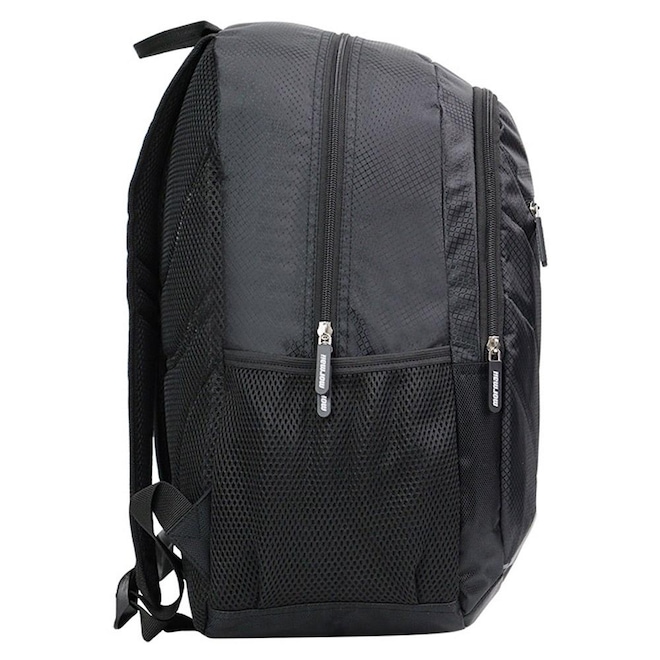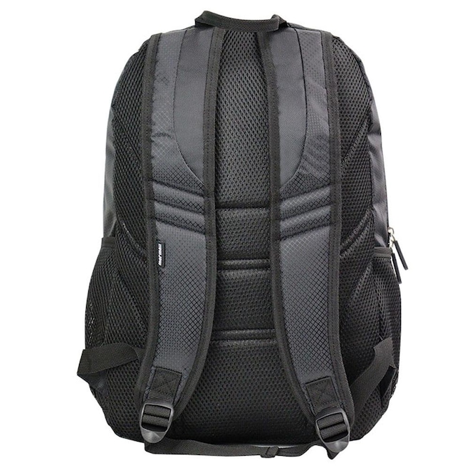Mochila Mormaii com alças acolchoadas, alça manual reforçada, costas acolchada reforçada, costura dupla reforçada e etiquetas personalizadas.