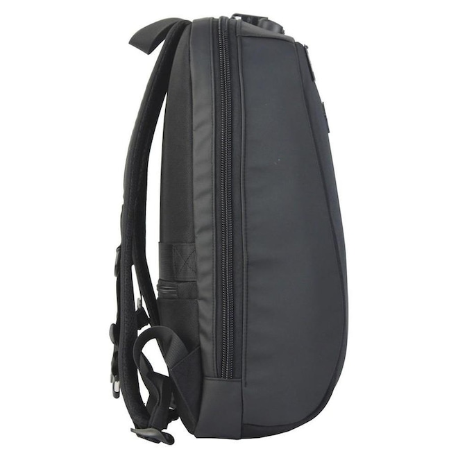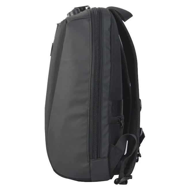 Mochila Mormaii com cadeado em segredo embutido, alça manual em EVA reforçada, alças traseiras acolchoadas, zipper e logo em metal, costas reforçadas acolchoadas, múltiplos compartimentos, compartimento para laptop e etiquetas personalizadas.