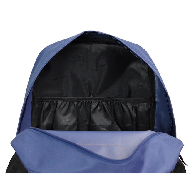 Mochila Mormaii com alças acolchoadas, alça manual reforçada, costas acolchada reforçada, costura dupla reforçada e etiquetas personalizadas.