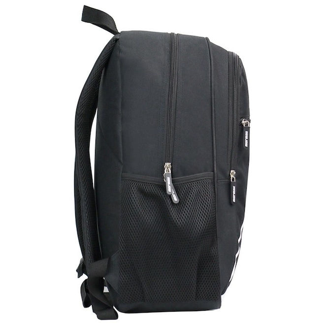 Mochila Mormaii com alças acolchoadas, alça manual reforçada, costas acolchada reforçada, costura dupla reforçada e etiquetas personalizadas.