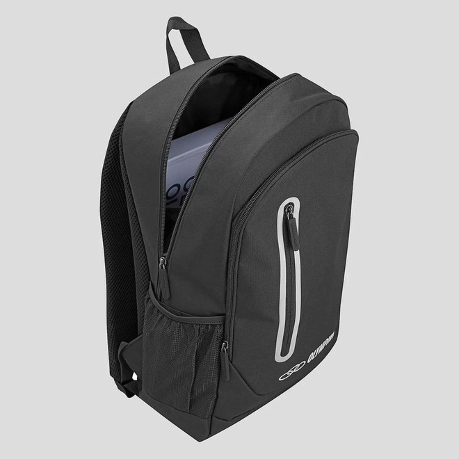 Leve sua necessaire e roupas de treino de forma protegida e prática usando a Mochila Esportiva da Olympikus. Seu amplo compartimento interno possui divisória para melhor organização, além de de bolso com fecho em zíper na parte frontal para documentos e bolsos em tela nas laterais para objetos menores e garrafinhas d?água. material: Poliéster.
