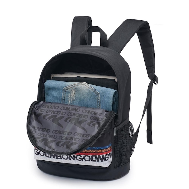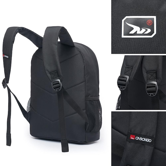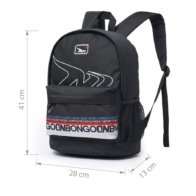 Ficha Técnica: - Modelo: Escolar - Marca: Onbongo - Material: 100% Poliéster - Medição (A*L*P): 41*28*13 - Peso: - Capacidade: 14L Características do produto: - Compartimento para notebook de até 14? - Compartimento principal com amplo espaço interno que comporta cadernos, pastas e etc.. - Compartimento menor para pequenos objetos e documentos pessoais. - Possui gancho para carregar estojo -Forro interno personalizado -Bolsos laterais telados que comportam garrafa de 500ml - Possui alça de mão - Alças reguláveis e acolchoadas - Fechamento em zíper - Logo, detalhes e zíper personalizados - Mochila autêntica, resistente e original Características estojo: - Possui um compartimento que comporta lápis e canetas - Forro interno personalizado - 18 cm de diâmetro total Cuidados de conservação: Evite carregar excesso de peso Embalar objetos com cantos vivos cortantes Para limpeza, utilize apenas pano úmido ou esponja macia e sabão neutro Não utilizar nenhum produto químico para limpeza Conservar em local seco e arejado *** 90 dias de garantia contra defeitos de fábrica***