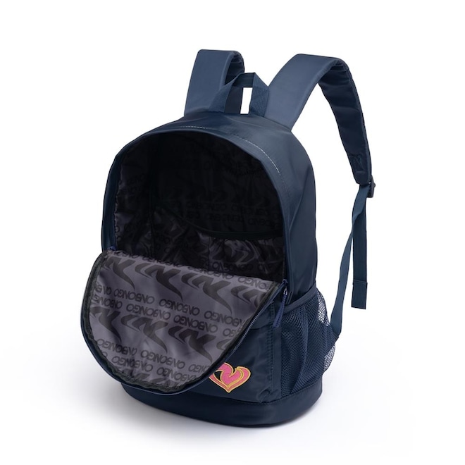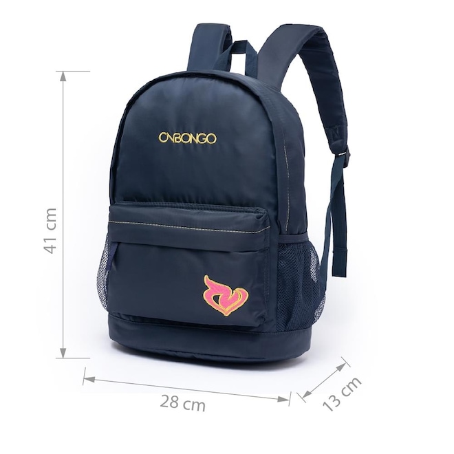 Ficha Técnica: - Modelo: Escolar - Marca: Onbongo - Material: 100% Poliéster - Medição (A*L*P): 41*28*13 - Peso: - Capacidade: 14L Características do produto: - Compartimento para notebook de até 14? - Compartimento principal com amplo espaço interno que comporta cadernos, pastas e etc.. - Compartimento menor para pequenos objetos e documentos pessoais. - Possui gancho para carregar estojo -Forro interno personalizado -Bolsos laterais telados que comportam garrafa de 500ml - Possui alça de mão - Alças reguláveis e acolchoadas - Fechamento em zíper - Logo, detalhes e zíper personalizados - Mochila autêntica, resistente e original Características estojo: - Possui um compartimento que comporta lápis e canetas - Forro interno personalizado - 18 cm de diâmetro total Cuidados de conservação: Evite carregar excesso de peso Embalar objetos com cantos vivos cortantes Para limpeza, utilize apenas pano úmido ou esponja macia e sabão neutro Não utilizar nenhum produto químico para limpeza Conservar em local seco e arejado *** 90 dias de garantia contra defeitos de fábrica***