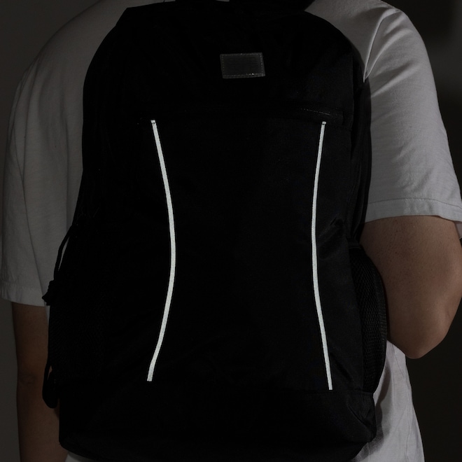 Seu painel traseiro é levemente acolchoado e em mesh (Fibras em Malha com Tramas Abertas).