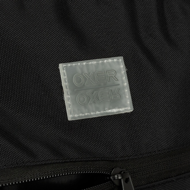 A mochila Oxer possui fechamento em zíper, com alças traseiras reguláveis e em mesh.