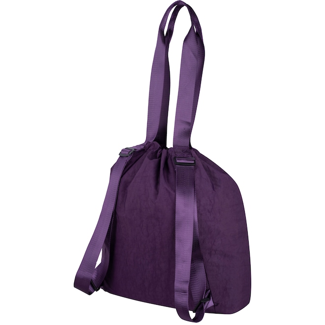 O seu fechamento é em cordão e o bolso interno é amplo, externamente também há um bolso, já suas alças promovem opções para o transporte. São duas manuais e duas traseiras que são reguláveis.