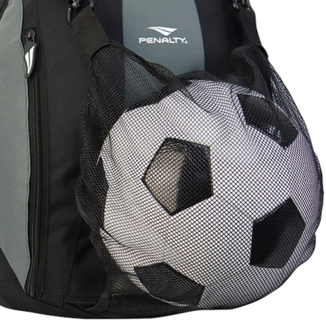 Compartimentos: 1 bolso grande, 1 bolso intermediário, e bolso inferior para rede de bola