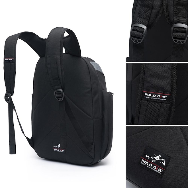 Características - Marca: Polo One - Material: Poliéster 900D - Dimensões (A*P*L): 44x18x31 cm - Peso: 0,650 - Capacidade: 25 litros - Fechamento zíper - Confeccionada em tecido 100% poliéster de alta resistência - Estampa, logo puxadores, etiquetas e forro personalizados. - Bolsos laterais com fechamento em zíper - Possui duas alças frontais com fecho de contato, reguláveis para skate - Bolsos porta óculos. - Alças ergonômicas e reguláveis - Compartimento acolchoado para Ipad e notebook de até 15,6 polegadas - Mochila autêntica, resistente e original Cuidados de conservação: - Evite carregar excesso de peso - Embalar objetos com cantos vivos cortantes - Para limpeza, utilize apenas pano úmido ou esponja macia e sabão neutro. Não expor a luz do sol para secar - Não utilizar nenhum produto químico para limpeza - Conservar em local seco e arejado *** 90 dias de garantia contra defeitos de fábrica***