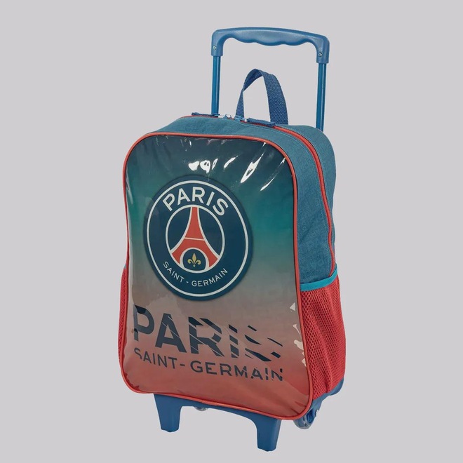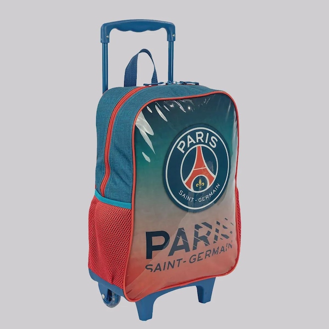 Dimensões aproximadas (A x L x P): 44 x 31 x 16 cmAbertura/fechamento: Zíper bidirecionalComposição: 73% Poliéster e 27% PVCCompartimento: Um principal amploAlças: Uma manual e outra retrátilCor predominante: AzulCapacidade/ Volume: 14 LPeso aproximado: 630 gPorta-notebook: NãoPorta-garrafas: SimOrigem: ImportadaClube: Paris Saint GermainIdade: InfantilBolso: NãoTamanho único*Possui carrinho embutido