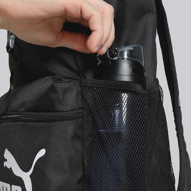 Abertura/fechamento: Fivela de engate e cordão com trava de mola