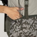 Conta com bolsos e divisórias e tem alças traseiras e reguláveis.