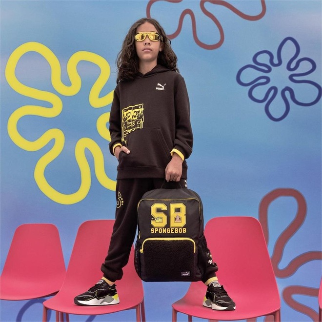 O surf está em alta na Fenda do Biquíni: A PUMA fez parceria com a série de TV de sucesso da Nickelodeon, Bob Esponja Calça Quadrada, para criar uma nova coleção para todos os fãs. Esta temporada é sobre estilo na volta às aulas. Elementos universitários, cores vibrantes e muito Bob Esponja e Patrick DETALHES. Esta mochila com super marca tem forro sherpa macio no bolso frontal para maior textura. Vocês estão prontas, crianças?
