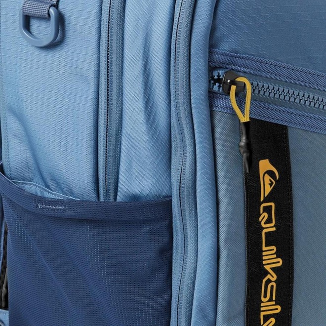 Mochila Quiksilver com 3 compartimentos principais, bolso dedicado para laptop com capa para tablet, organizador de acessórios, bolsos para cabos e pequenos acessórios, bolso secreto no painel traseiro, bolso externo com zíper de vislon, bolsos laterais para garrafas de água, bolso para óculos de sol forrado em tricô, alças acolchoadas com airmesh, manga trolly no painel traseiro, fita personalizada refletiva nas alças, alça de transporte superior e etiquetas personalizadas.