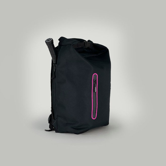 Fabricada em 100% poliéster resistente, a mochila oferece leveza e durabilidade, com estrutura reforçada e detalhes que facilitam o transporte de raquetes e acessórios. O compartimento lateral acomoda uma raquete com segurança, enquanto o fechamento superior com rolagem e clipe garante ajuste e proteção extras.