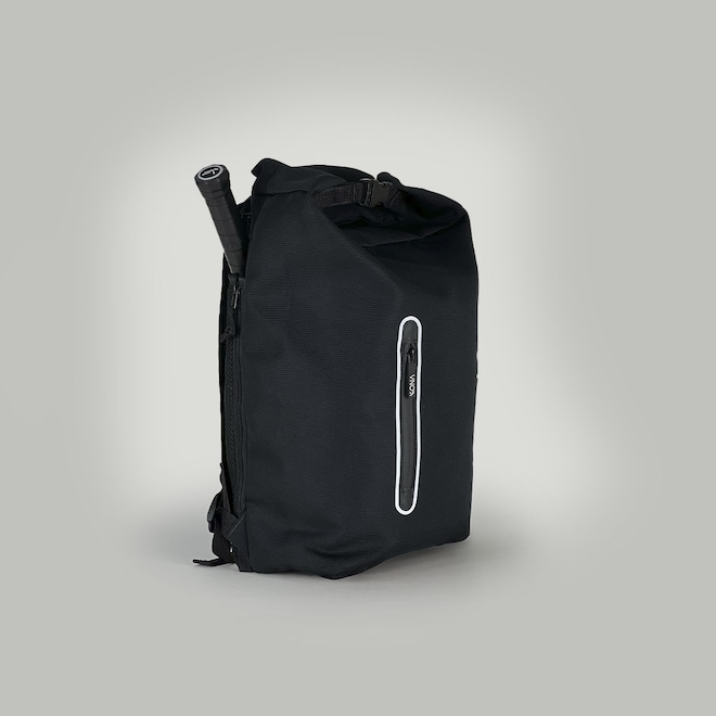O compartimento lateral exclusivo para raquete oferece proteção e fácil acesso ao seu equipamento. O fechamento superior em estilo roll-top com clipe garante maior segurança contra imprevistos e ainda permite ajustar o volume da mochila conforme a necessidade.