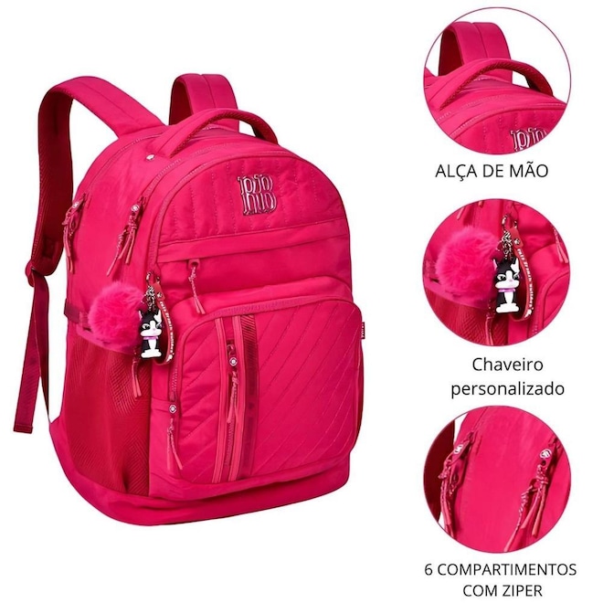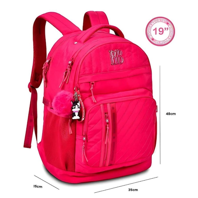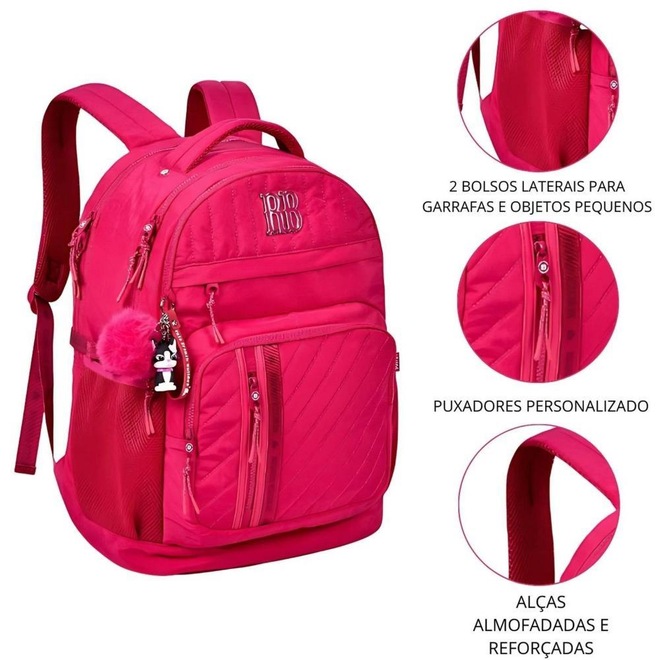 Aclamada entre as fashionistas, Rebecca Bonbon, retorna com as principais tendências para a Coleção 2025. Novas linhas com aplicações variadas e acessórios diferenciados reafirmam que a combinação entre moda e Volta às Aulas é sucesso garantido. Confeccionadas em crinkle com matelassê, alças com cadarço logado acetinado e puxador com cadarço. Mochilas acompanham chaveiro de pompom e borracha com Rebecca Bonbon 3D. - Bolsos internos; - Compartimento de laptop / tablet; - Alça carona; - Bolso antifurto.