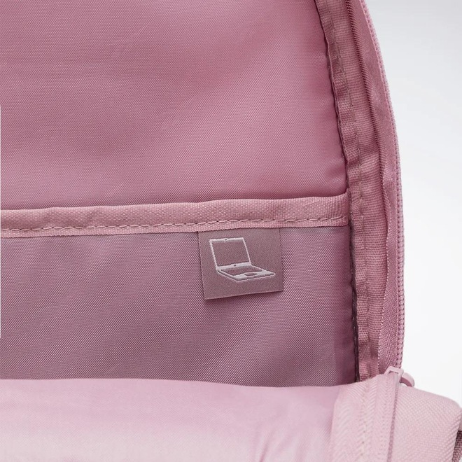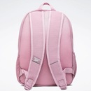 Mochila Reebok com compartimento principal, compartimento na parte frontal, estampa frontal, alças ajustáveis, espaço para laptop e etiquetas personalizadas.