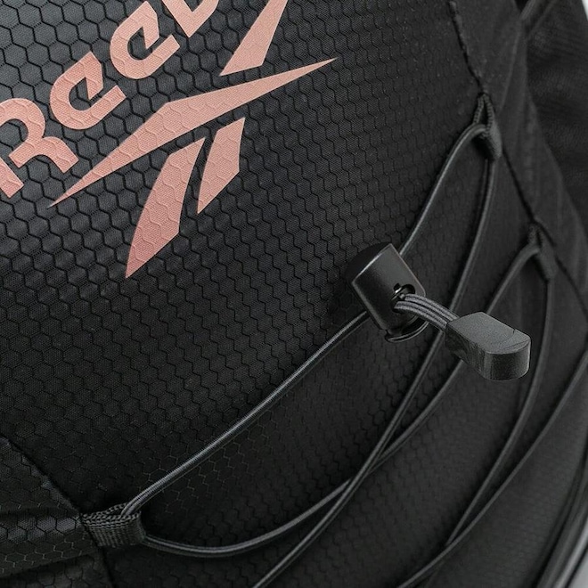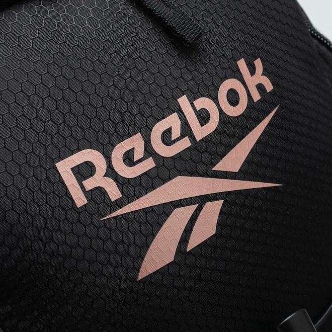 Mochila Reebok esportiva, prática para o dia a dia, com bolso lateral em telinha, além de contar com etiquetas personalizadas.
