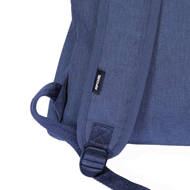 Mochila Rip Curl com seção principal espaçosa, logo estampado, bolso frontal, alças ajustáveis e etiquetas personalizadas.