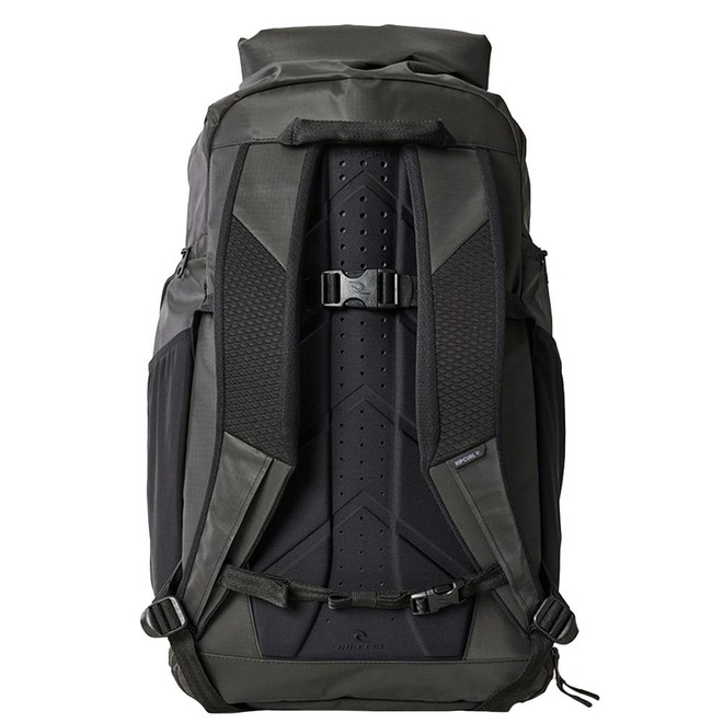 Mochila Rip Curl com seção para laptop, seção Roll & Clip, para itens molhados/secos, organizador dedicado para quilhas, painel frontal moldado em EVA para proteção adicional, organizador externo para parafina e protetor solar, bolso técnico forrado em lã, bolso para garrafa de bebida isolado e alças de mochila respiráveis.