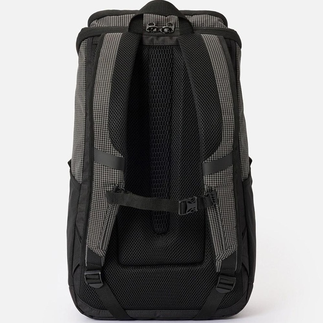 Mochila Rip Curl com compartimento para laptop, bolso para óculos com forro de lã, bolso isolado para garrafa, vários bolsos organizadores, alças para skate, painel traseiro em malha Airmesh e alça de mochila respiráveis.