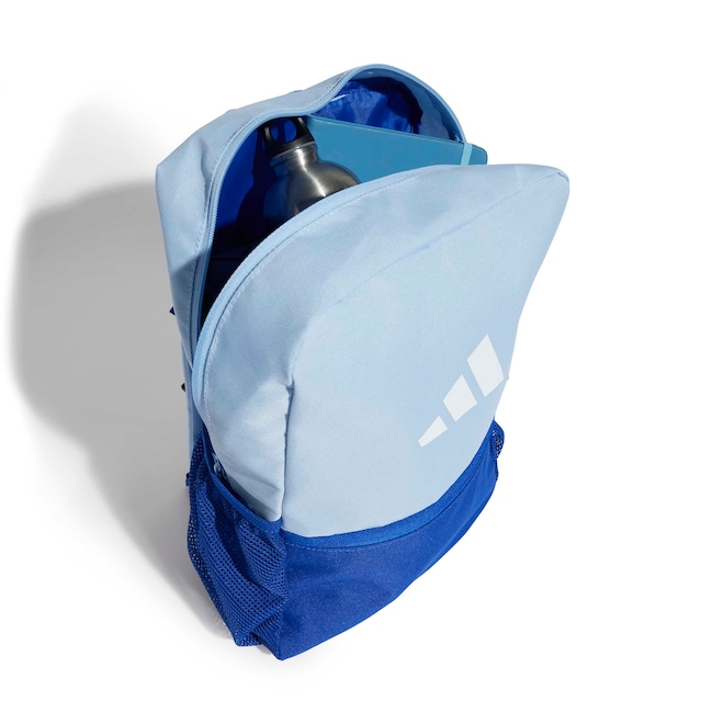 Esta mochila infantil adidas foi feita para acompanhar o ritmo. As alças ajustáveis garantem um ajuste perfeito e os bolsos laterais em malha elástica são perfeitos para guardar pequenos achados. O bolso frontal com zíper permite que as crianças mantenham seus itens mais importantes a fácil alcance. Este produto é feito com pelo menos 50% de materiais reciclados. Ao escolher o reciclado, podemos reutilizar materiais já criados, o que ajuda a reduzir o desperdício e a nossa dependência de recursos finitos, além de reduzir a pegada dos produtos que fabricamos.