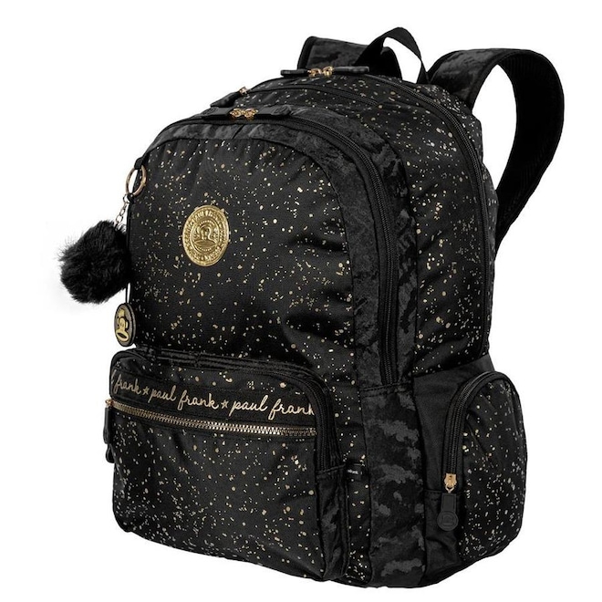 Mochila Sestini 2 Comp Paul Frank Styles Preto e Dourado