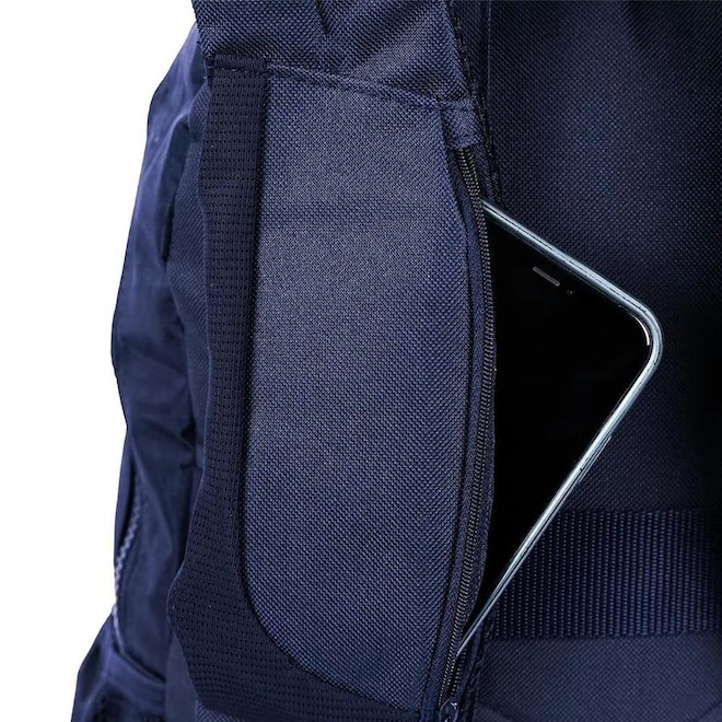Dourado feita em nylon, possui alças e costas espumadas, bolsos laterais, bolso escondido nas costas e muito mais.