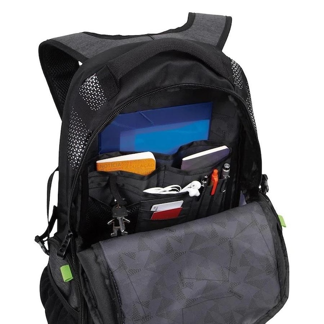 Tem também fechamento por zíper, bolsos laterais com elástico e zíper e bolso frontal com zíper, para que você possa manter tudo sempre ao seu alcance.