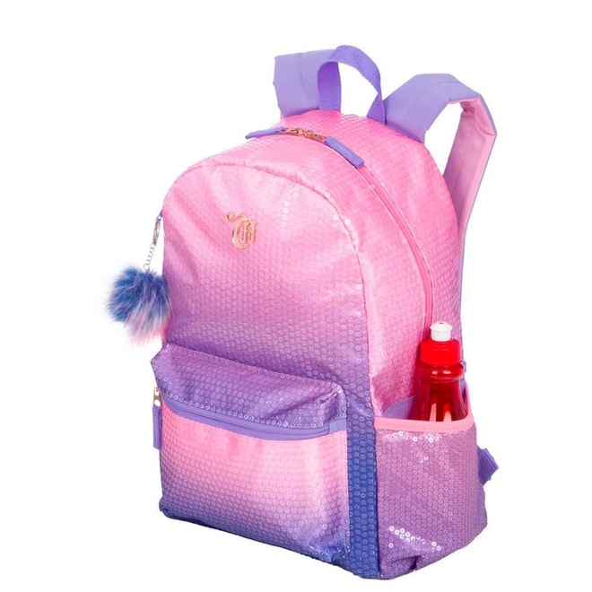 As cores e se destacam nessa linda mochila da Capricho, com uma textura em paetê que dá um brilho especial e vai fazer você se destacar! Ela tem alças espumadas e ajustáveis à sua altura, além de amplo espaço interno e um bolso frontal com fechamento em zíper. Ah, repara só no pingente que vem junto. É um charme!