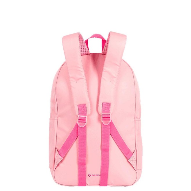 A Mochila Sestini Trend combina estilo e praticidade, com alças espumadas reguláveis, bolso frontal, alça de mão em cadarço e fechamento em zíper. Acompanha patches emborrachados e um pingente exclusivo, unindo funcionalidade e moda.