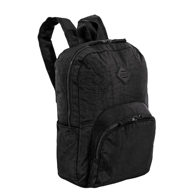 Uma mochila versátil para o dia a dia, escola e viagens. Compacta por fora, mas espaçosa por dentro, possui bolso frontal com zíper e bolso lateral para garrafa e pequenos itens. Feita de Crinkle nylon preto, é leve, fácil de limpar e tem alças ajustáveis para conforto.