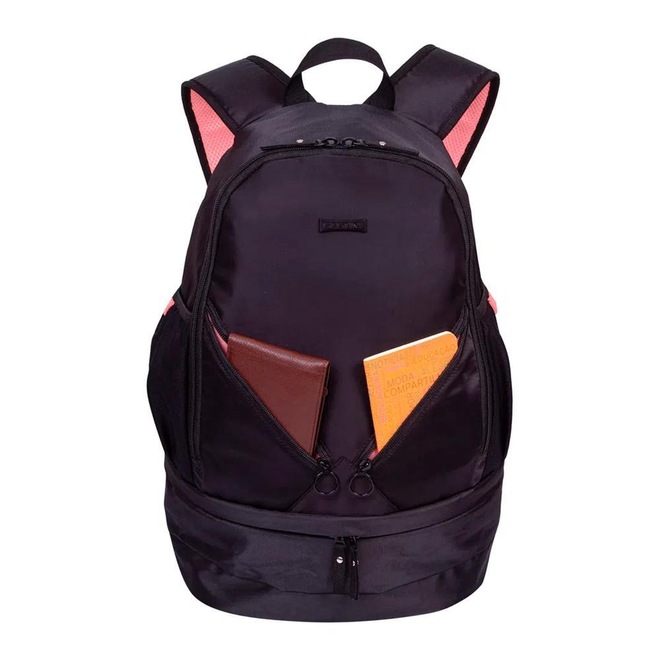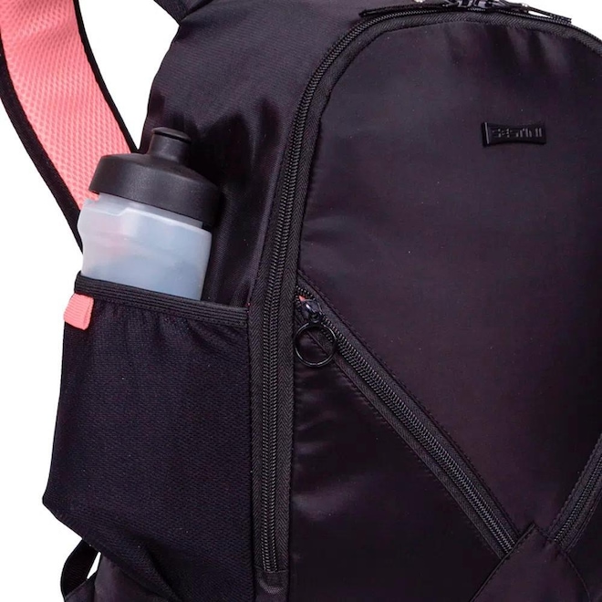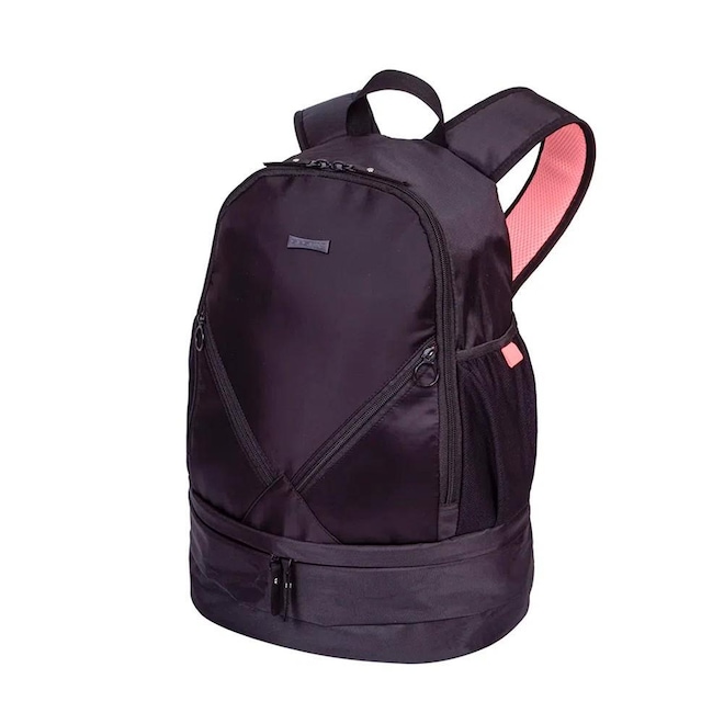 Possuí alças e costas espumadas proporcionando maior conforto, tem compartimento em PVC separado para guardar seu Tênis, alça de mão, puxadores do zíper de metal com cadarço e ainda tem bolso de acesso rápido e bolso lateral com redinha e elástico para pequenos objetos ou garrafinha.