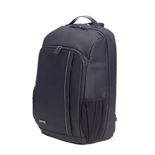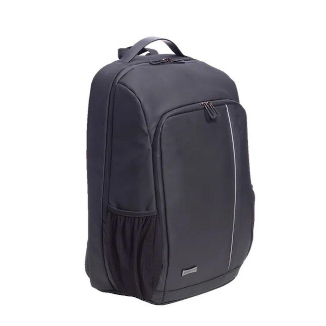 A mochila Slim tem espaço para notebooks de até 17 e alça carona, para facilitar o transporte junto com a mala de viagem.