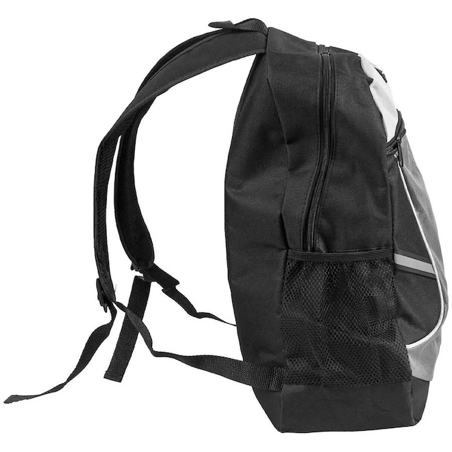 A mochila possui alças com regulagem para adequar a distância entre os ombros e os quadris além de um ótimo espaço interno composto por dois compartimentos independentes com zíper, proporcionando uma melhor organização dos objetos. Apresenta saída para fones de ouvido, bolsos laterais com rede elástica e duas tiras refletivas no corpo da mochila e também na logomarca, garantindo segurança no uso noturno. As costas e alças foram confeccionadas com espuma para maior conforto em sua utilização além da opção de alça de mão, para um transporte prático.