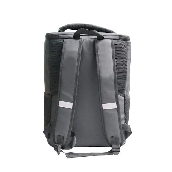 Produzida em poliéster, possui estrutura funcional com interior térmico que auxilia na conservação da temperatura dos itens por determinado período, dependendo das condições de uso.
