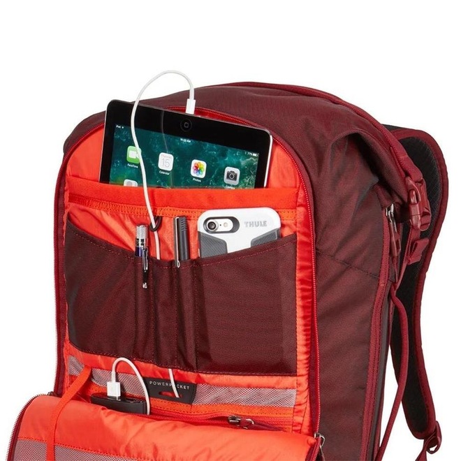 - Sobre o produto - Mochila Thule para Notebook Subterra - 34 Litros- Mochila Thule Para Notebook Subterra 34L Ember Vermelho - A Thule Subterra 34L é uma mochila de viagem moderna com recursos refinados que a tornam a mochila perfeita para viagens ou o dia a dia. Em viagens, o cubo de arrumação removível ajuda a organizar seus itens e otimizar o espaço. A mochila conta com uma pasta para laptop acolchoada com estrutura SafeEdge para um MacBook Pro de 15 polegadas ou um PC de 15,6 polegadas. O compartimento menor também oferece pequenos bolsos para dispositivos eletrônicos e um PowerPocket que facilita carregar a bateria do seu telefone ou tablet. - Todos os recursos