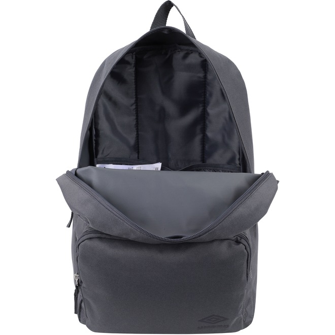 A mochila Umbro possui fechamento em zíper, com alça manual, traseiras em mesh e reguláveis.