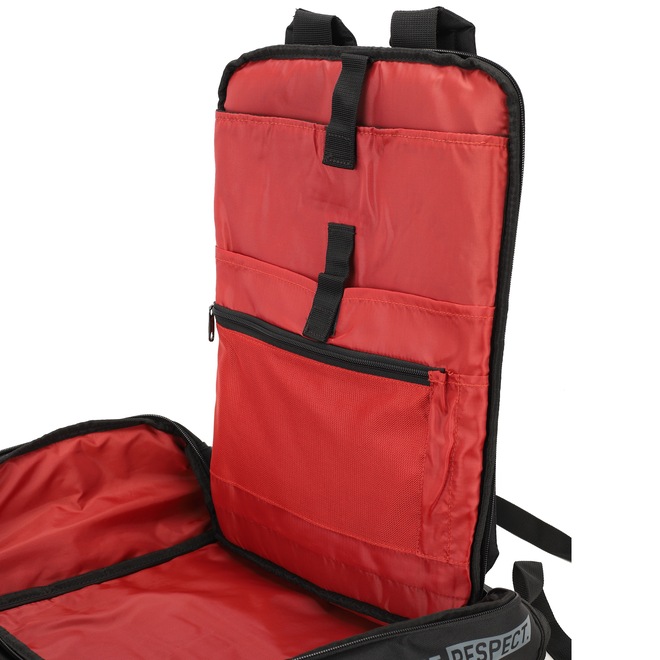 Possui ainda bolso superior com função de porta-calçados e roupas, evitando o contato com roupas limpas, divisória lateral para carregar squeeze e bolso traseiro forrado em fleece para guardar objetos delicados.