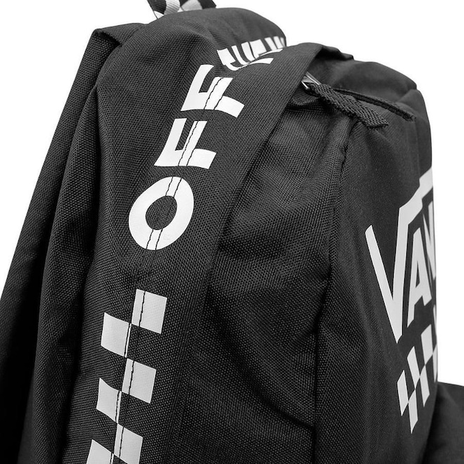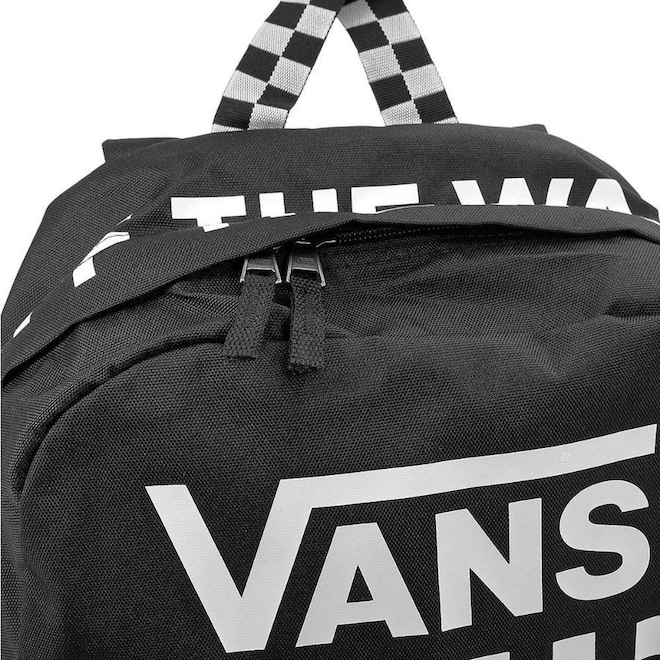 Suas alças são reforçadas e reguláveis, oferecendo suporte personalizado. Além disso, o padrão Vans pode ser encontrado em todos os detalhes da mochila.