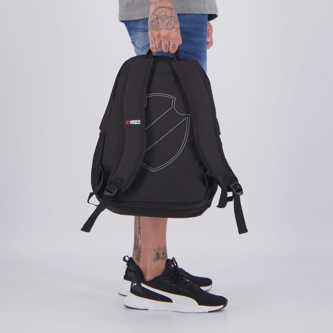 Dimensões aproximadas (A x L x P): 44 x 38 x 16 cmAlças: Uma de mão e duas para os ombrosAbertura/fechamento: ZíperCompartimento: Um principal amploBolso: Dois dianteiros com zíperComposição: 100% PoliésterCor predominante: PretoPeso aproximado: 510 gPorta-notebook: SimPorta-garrafas: SimClube: VascoOrigem: ImportadaTamanho único