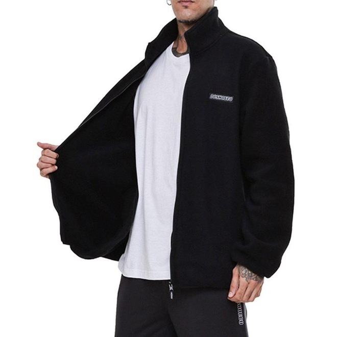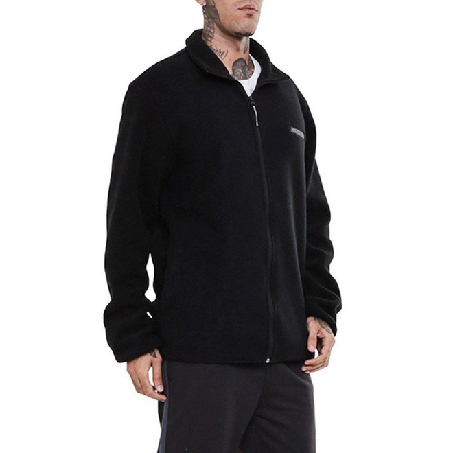 Moletom DC Shoes polar fleece, plush feece, gola com zíper, viés elástico nos punhos e barra, bolsos embutidos no tórax, patch silkado aplicado no peito e etiquetas personalizadas.