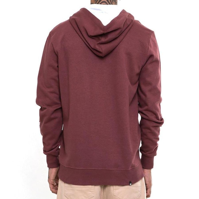 Moletom DC Shoes canguru fechado, 240g, modelagem regular, estampa frontal, estampa na manga, forro do capuz contrastante e etiquetas personalizadas da marca.