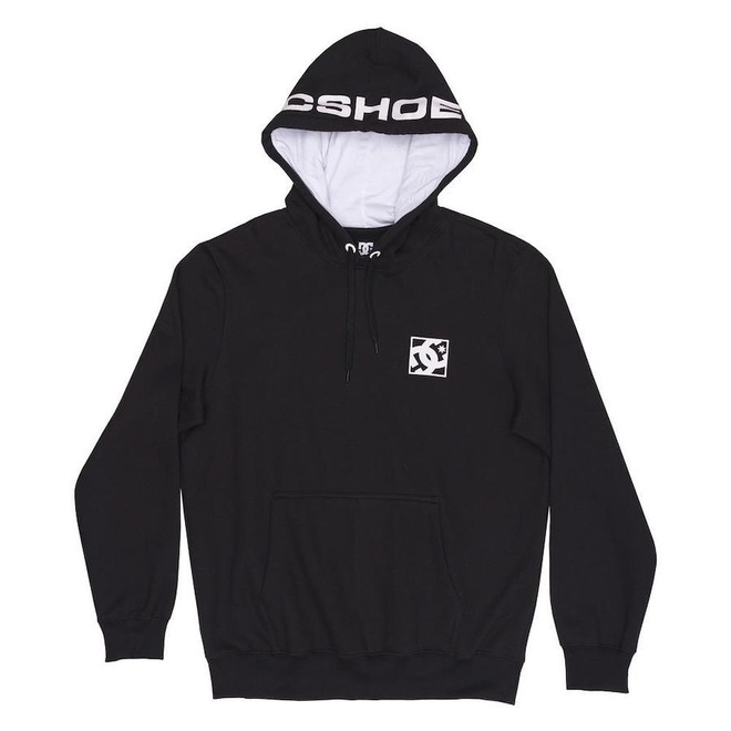Moletom DC Shoes feito em modelagem standard fit, 2 cabos 280g, estampa no peito, recorte no capuz com estampa, forro do capuz contrastante e etiquetas personalizadas.