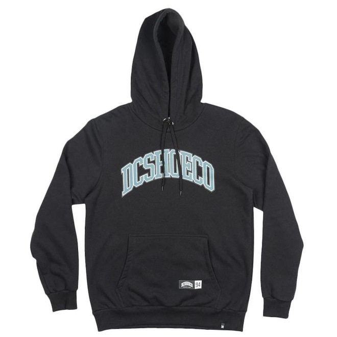 Moletom DC Shoes de 3 cabos, 320g, canguru fechado, estampa frontal, estamapa no canto inferior esquerdo e na manga na parte inferior, além de etiquetas personalizadas da marca.