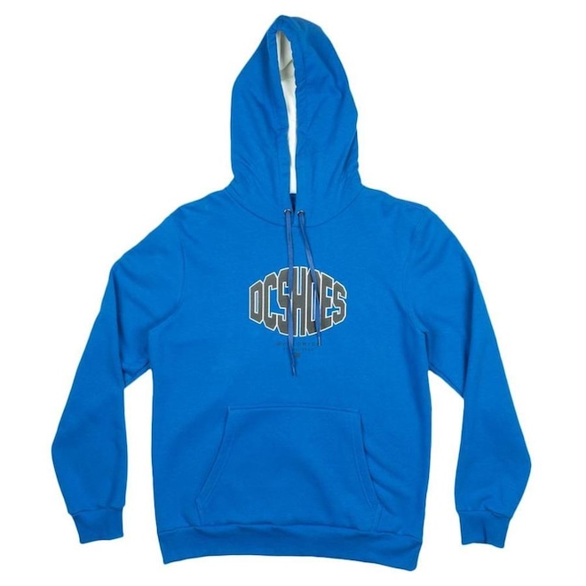 Moletom DC Shoes de 3 cabos, 320g, canguru fechado, estampa frontal, forro do capuz contrastante e etiquetas personalizadas da marca.