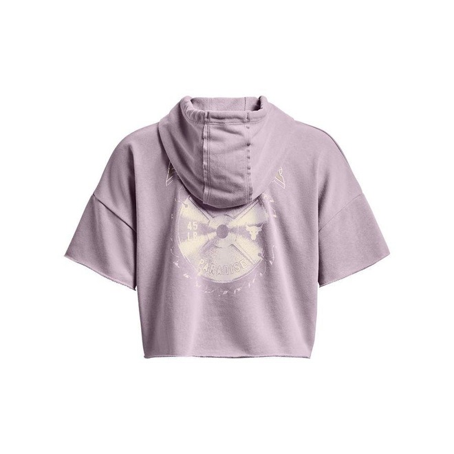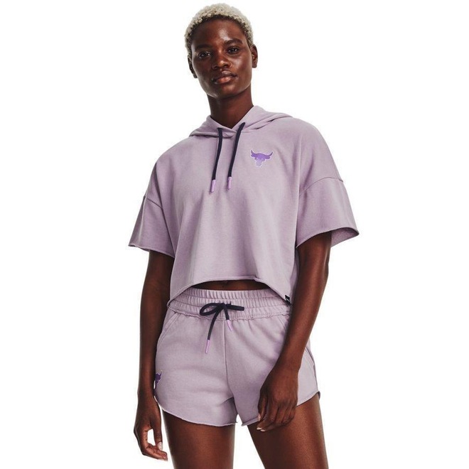 Moletom de treino Manga Curta Feminino Under Armour Project Rock Ter modelo com Capuz. COMPOSIÇÃO: 80% Algodão e 20% Poliéster.