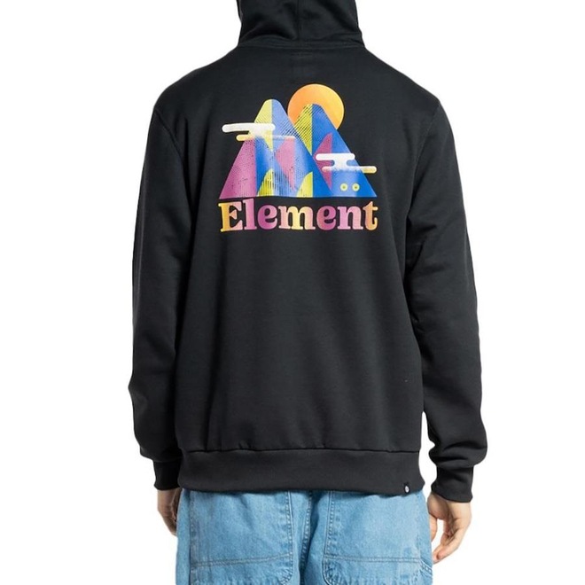 Moletom com estampa localizada frente e costas, capuz com cordão embutido e bolso canguru e etiquetas personalizadas Element.