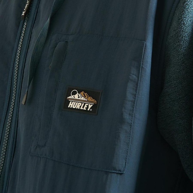 Moletom Hurley Aberto Especial importado, feito em tecido sherpa mescla, ótima proteção termica, dupla camada com poliamida, frente, costas e capuz, bolso no peito com zíper e transfer fastlane emborrachado, capuz com gola alta e bolsos frontais e mini bolso na altura do recorte.