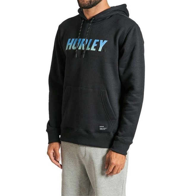 Moletom Hurley canguru com estampa localizada na parte frontal, capuz com ajuste, elástico na barra e nos punhos e etiqueta na barra.